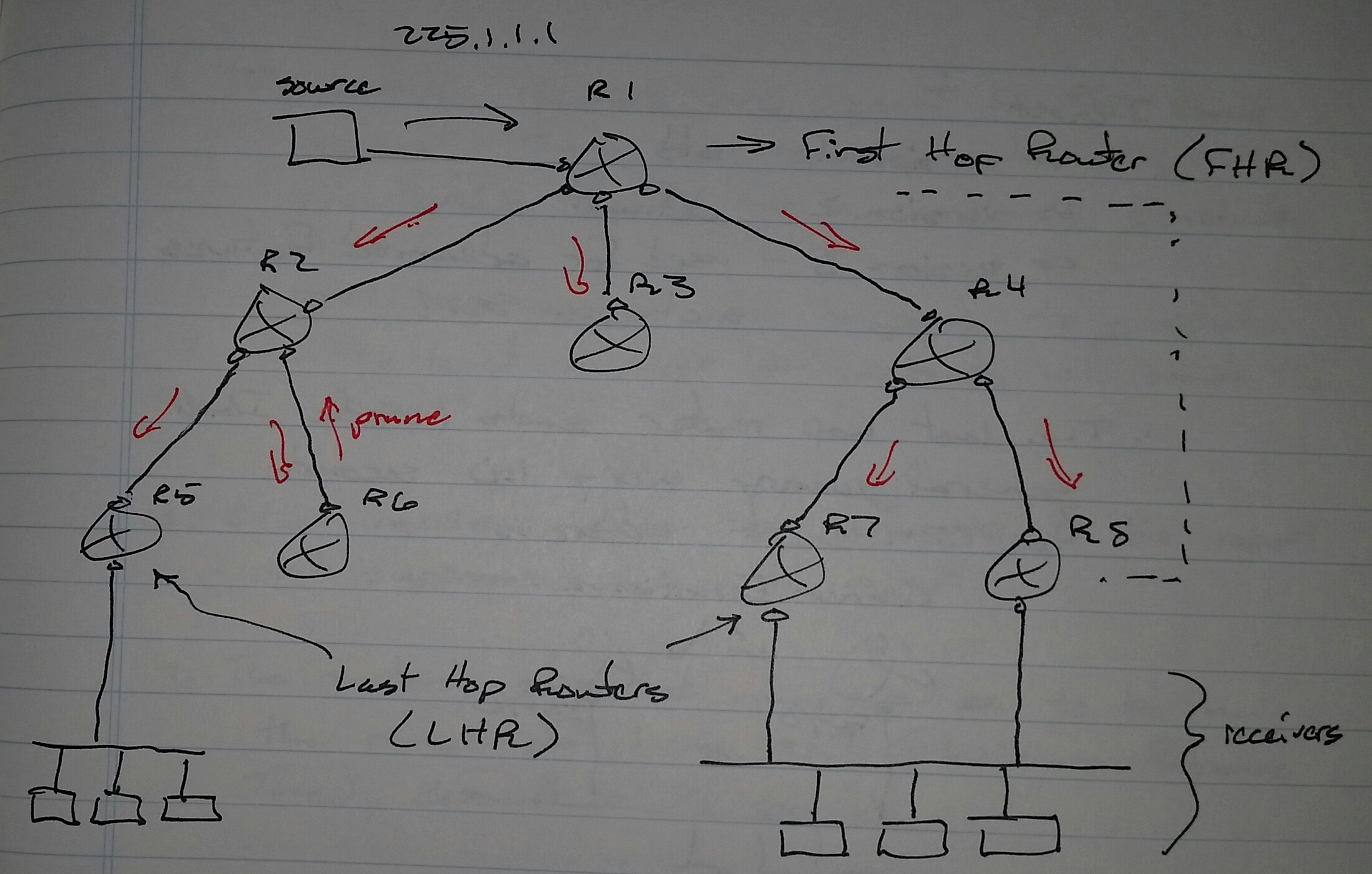 On sending side if there are multiple routers connected to the same segment, one will be elected as the DR